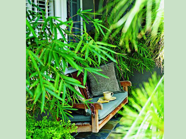 – Việc trồng những bụi tre nhỏ bên hông nhà, góc vườn kết hợp với 1 chiếc xích đu đơn giản hay 1 chiếc ghế nghỉ êm ái là 1 ý tưởng vô cùng tuyệt vời. Bạn sẽ sở hữu 1 góc thư giãn vô cùng thoải mái, có thể hòa mình vào cùng thiên nhiên xinh đẹp. Tiếng rào rào của tre sẽ mang đến cho bạn cảm giác bình yên trong tâm hồn, đem đến cảm giác thư thái.